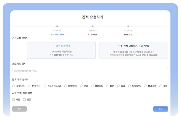 You can communicate lightly through the messaging function before requesting a quotation, and after requesting a quotation, you can continue to communicate more actively through chatting and video conferencing with the manufacturing company.